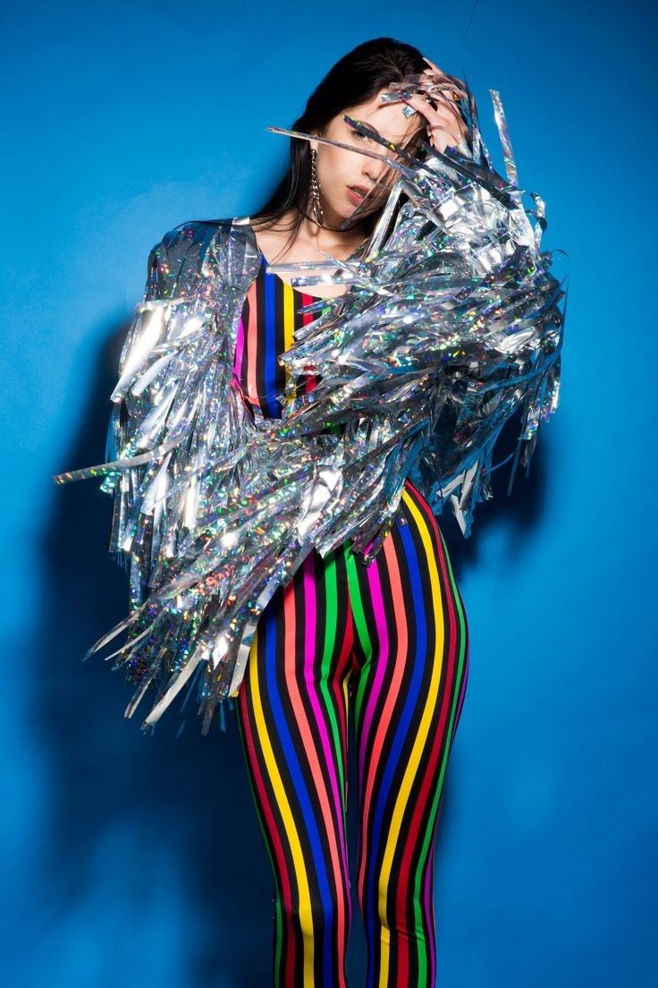На голубом и голографии не останавливаемся и добавляем ещё больше цвета! Тренд на смелое сочетание двух, трёх, а то и четырёх разных по тональности цветов набирает максимальные обороты. Чем ярче и контрастнее — тем лучше! Это прямая отсылка к эстетике Disco Star, взрыв оптимизма и жизнелюбия. Не боимся экспериментировать: чем ярче, чем больше блестит и выделяется — тем вернее мы попадаем в пульс 2026 года.