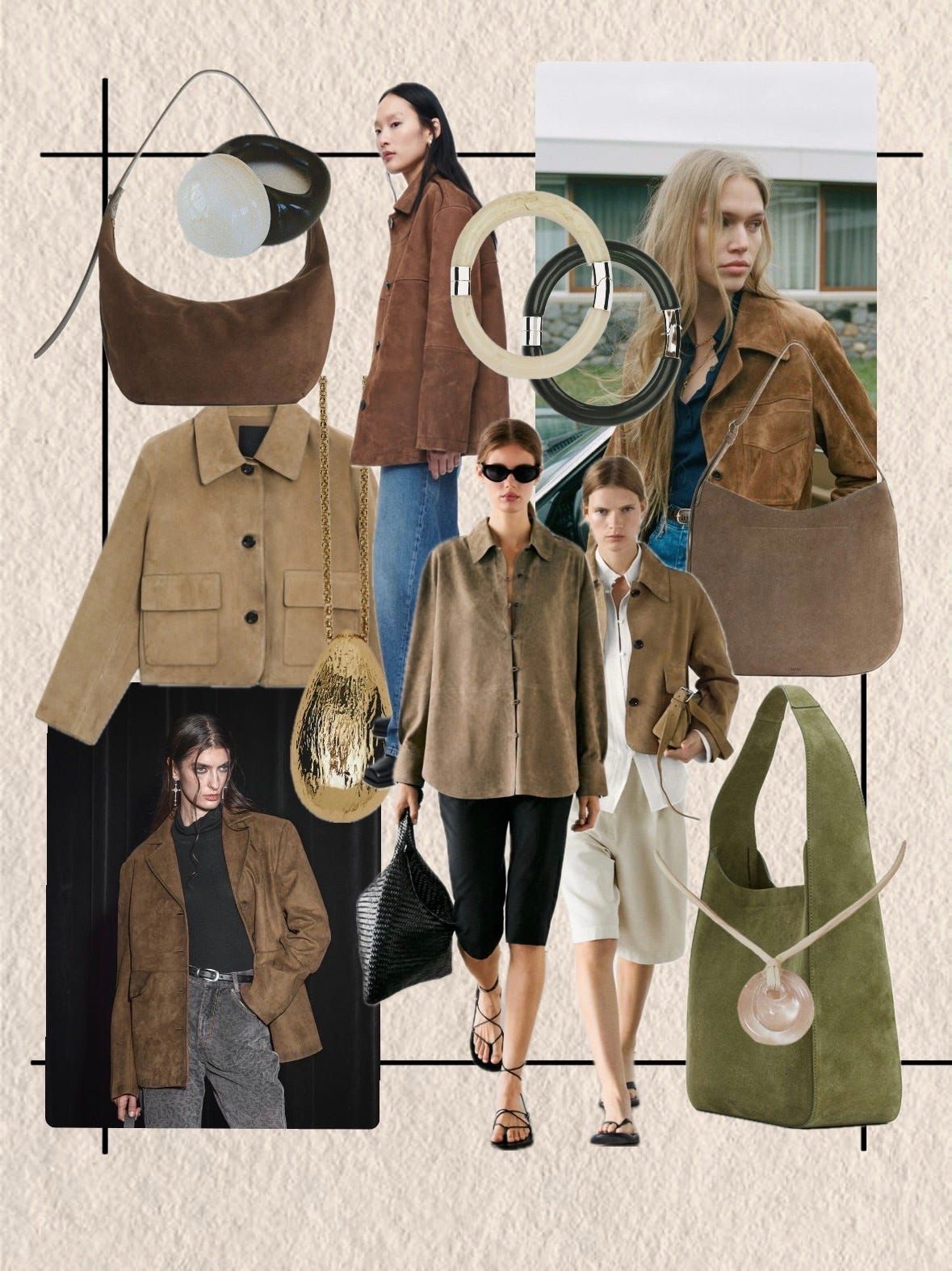 И вот он — цвет, который стал прямым попаданием в моё сердечко (и, уверена, в сердца всех, кто не готов ходить в полноценном космическом костюме). Хаки во всех его земных, благородных проявлениях: от пыльно-зелёного до глубокого оливкового и серо-коричневого. Невероятно универсальный, богатый оттенок, который подойдёт каждому. Он идеально сочетается как со спокойной базой — бежевым, кремовым, белым — так и создаёт совершенный контраст с горчичным, кирпично-красным или насыщенным бургунди. Хаки — это цвет укоренённости, тактильности и вневременной стильности.