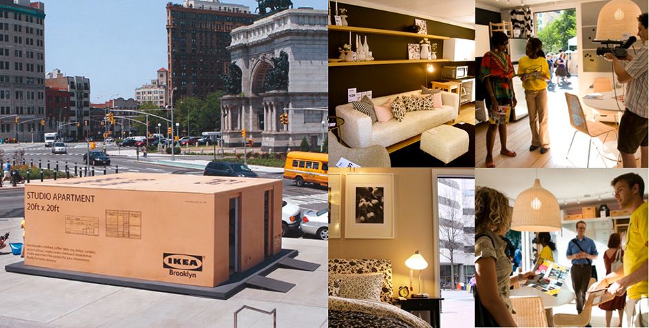 Пример: квартира в коробке от IKEA. Такую инсталляцию компания установила в центре Бруклина, чтобы каждый человек мог зайти в коробку и оценить дизайн «квартиры».