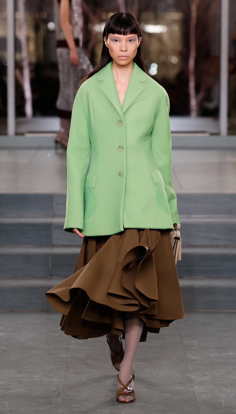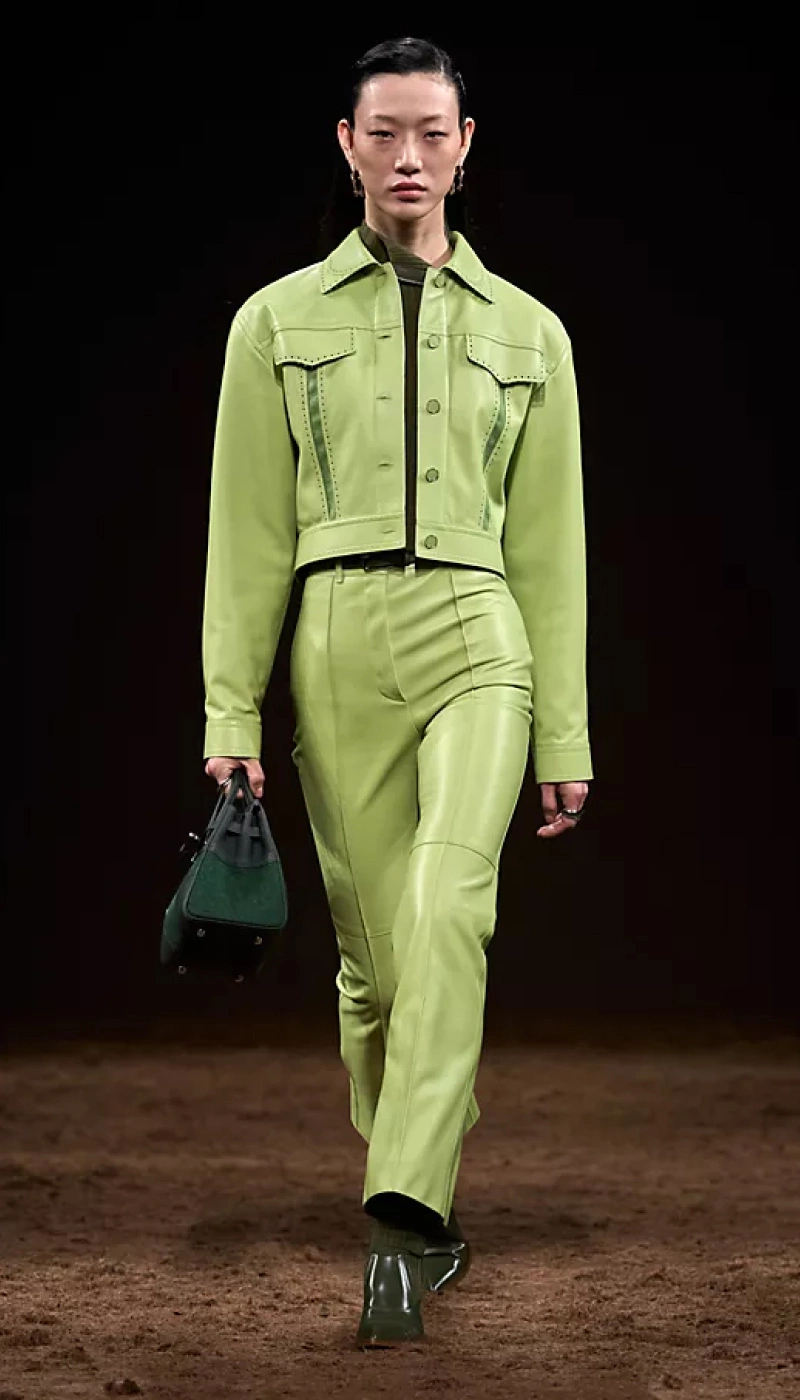 Еще один тренд этой осени — зеленый. Кстати, он идеально сочетается с первым цветовым трендом — фиолетовым. Институт Pantone еще не объявил цвет 2026 года, но говорят, это будет зеленовато-синий оттенок, трансформационный бирюзовый.
